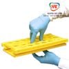 Giá ống nghiệm nhựa có thể xếp gọn và sản xuất từ chất liệu polypropylene giúp dễ dàng rửa sản phẩm mà giá không bị nổi trên nước.
